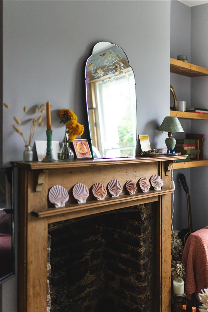 The entrance door opens onto a long corridor which houses the downstairs WC. The family friendly living space has large sash windows, framed by original wood paneling and shutters, bathing the room in natural light. An operational fireplace and original wooden floors.